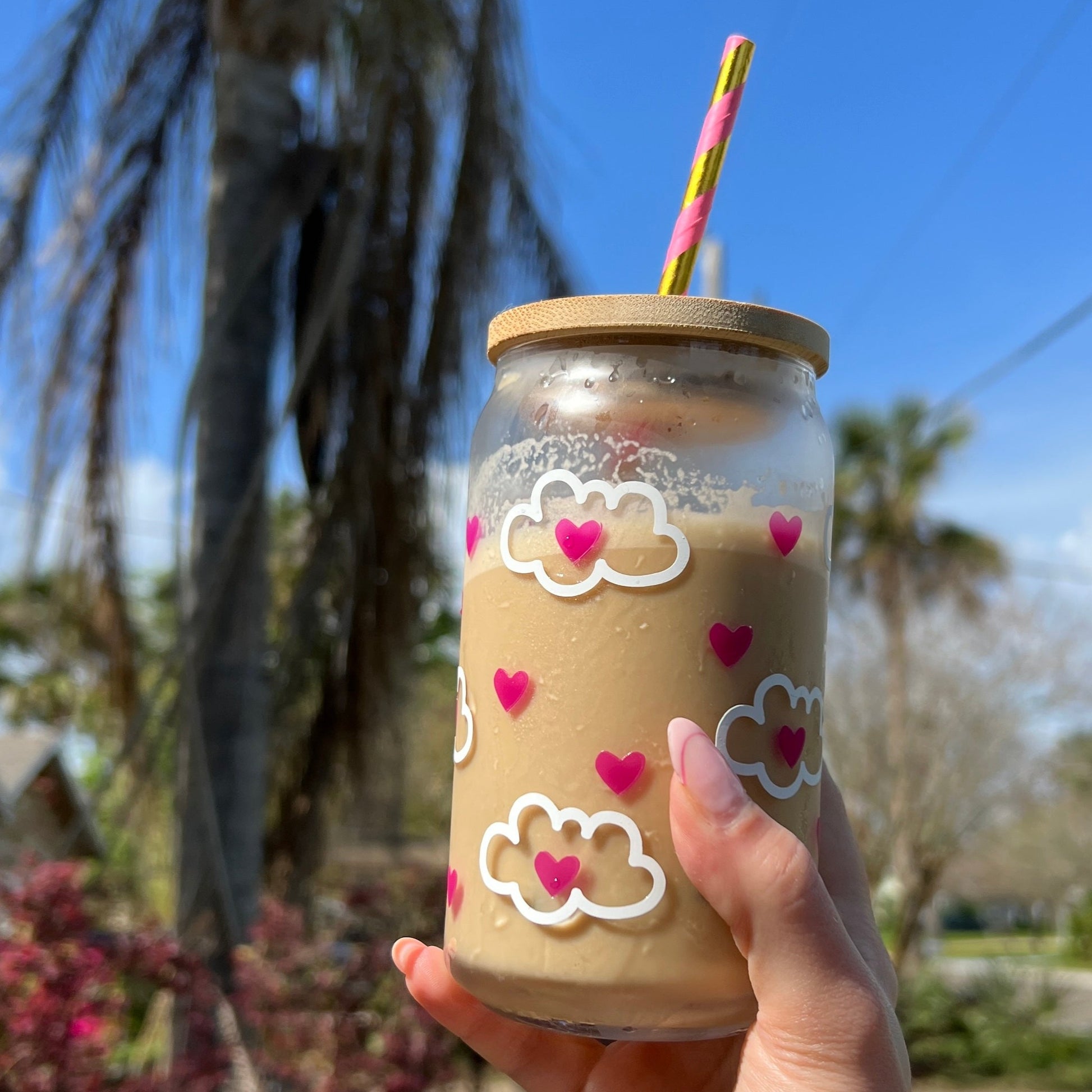 Make it magical - Take a nice coffee break with the Clouded Hearts Glass Cup. Let the cup inspire you to daydream about your sweetest fantasies. Also paired with the cold color changing vinyl, this glass cup is truly satisfying to enjoy your drink in.